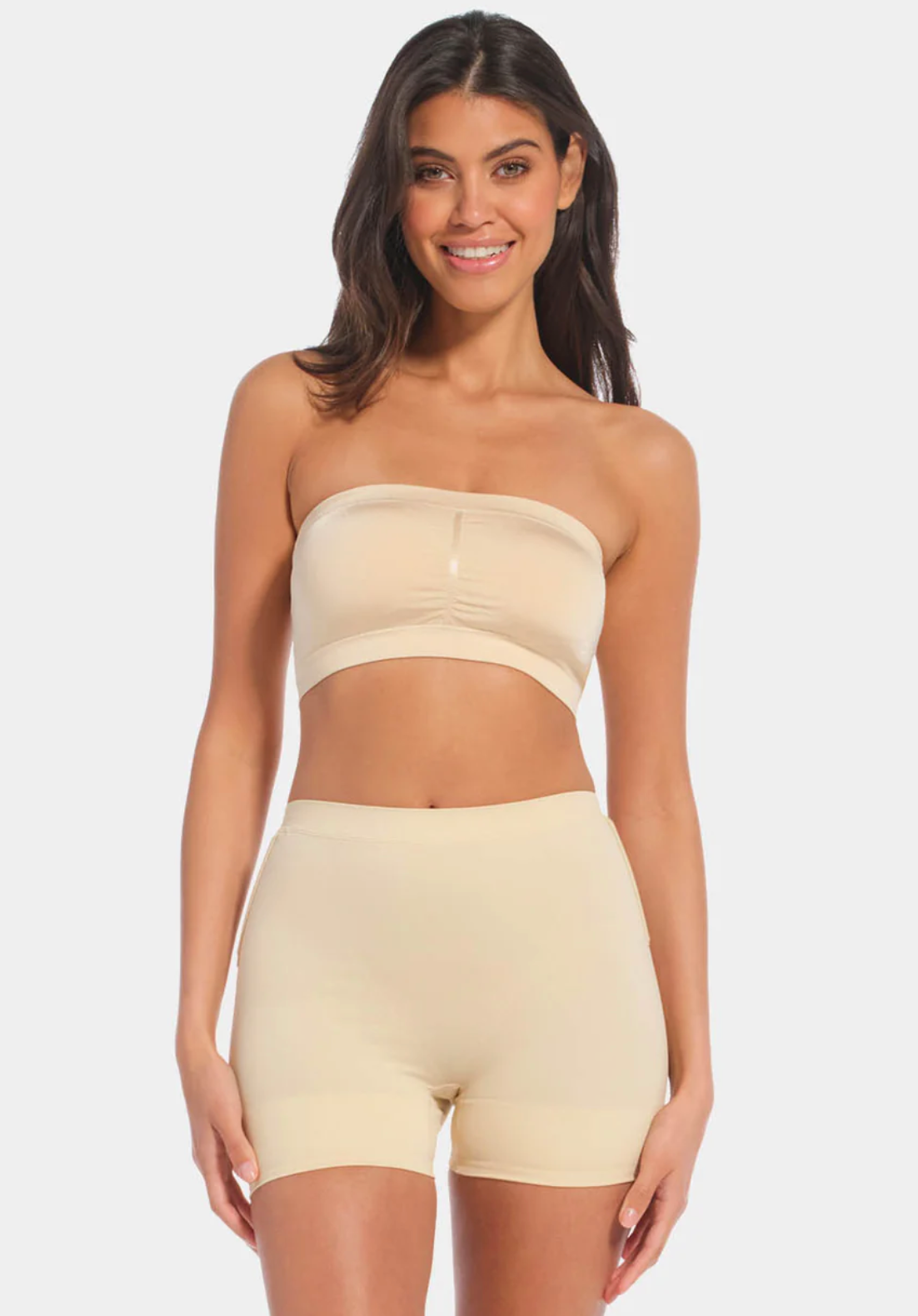 The Comfort Bandeau Strapless Bra features removable pads with built-in support to provide a beautiful, natural silhouette. The bra is ultra-soft and perfect under any strapless outfit. The wire-free and seamless bandeau design prevents any irritation. This is the perfect bandeau bra, suitable as underwear and outerwear.